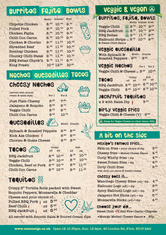 Located in the heart of Southampton, Mexigo offers a vibrant and flavor-packed experience that captures the essence of Mexican cuisine with a modern twist. The menu at Mexigo features a diverse range of dishes that cater to both traditional tastes and adventurous palates, ensuring there's something for everyone. Whether you're craving a hearty burrito or looking to explore lighter, more refreshing options, Mexigo doesn’t disappoint.